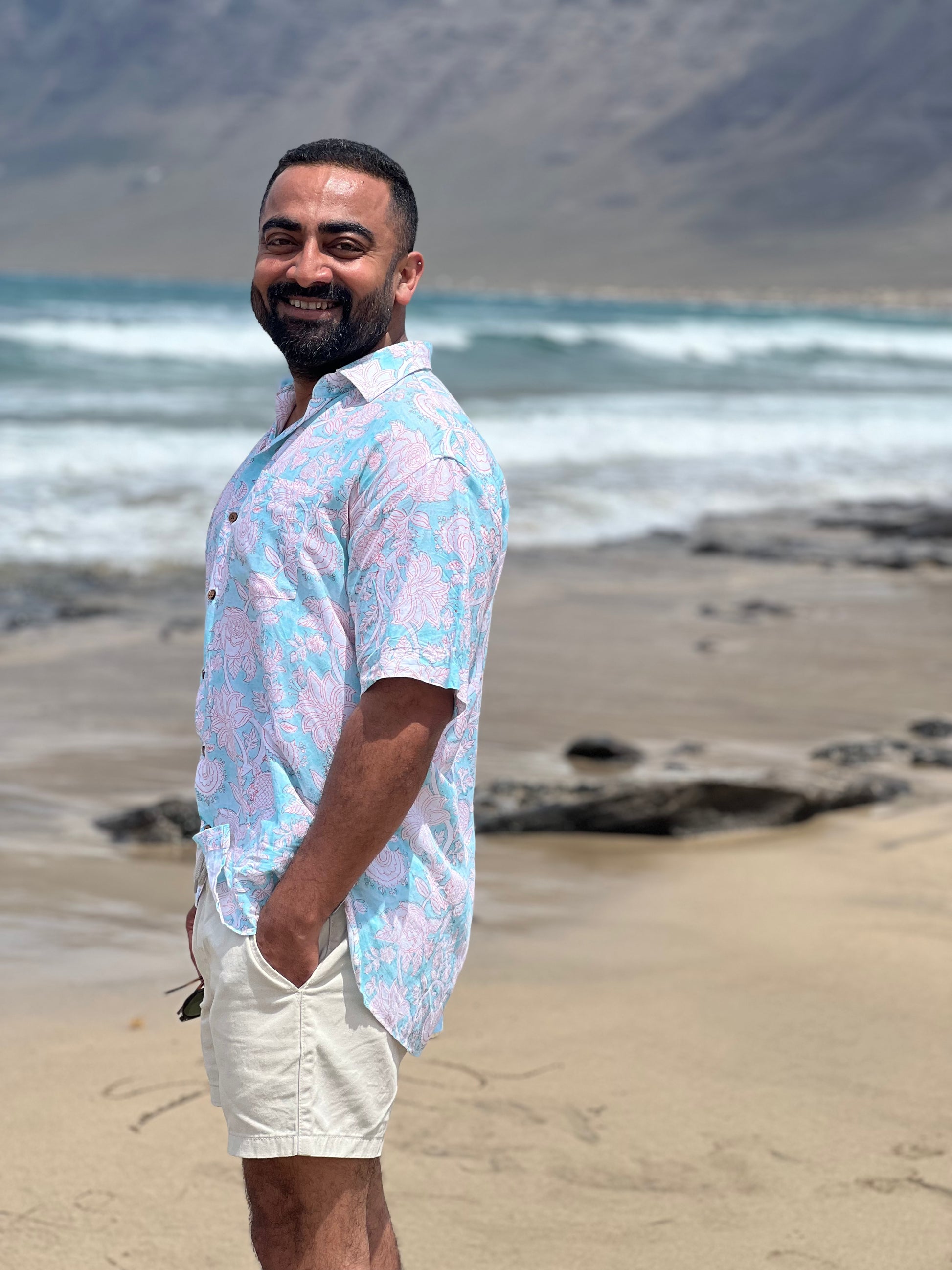 Our uber cool all gender shirts can be worn as oversized fit. The print is created using organic dyes and hand carved wooden blocks by the artisans of Jaipur, India. The garment is sewn by women of Sewing the Seeds social enterprise.