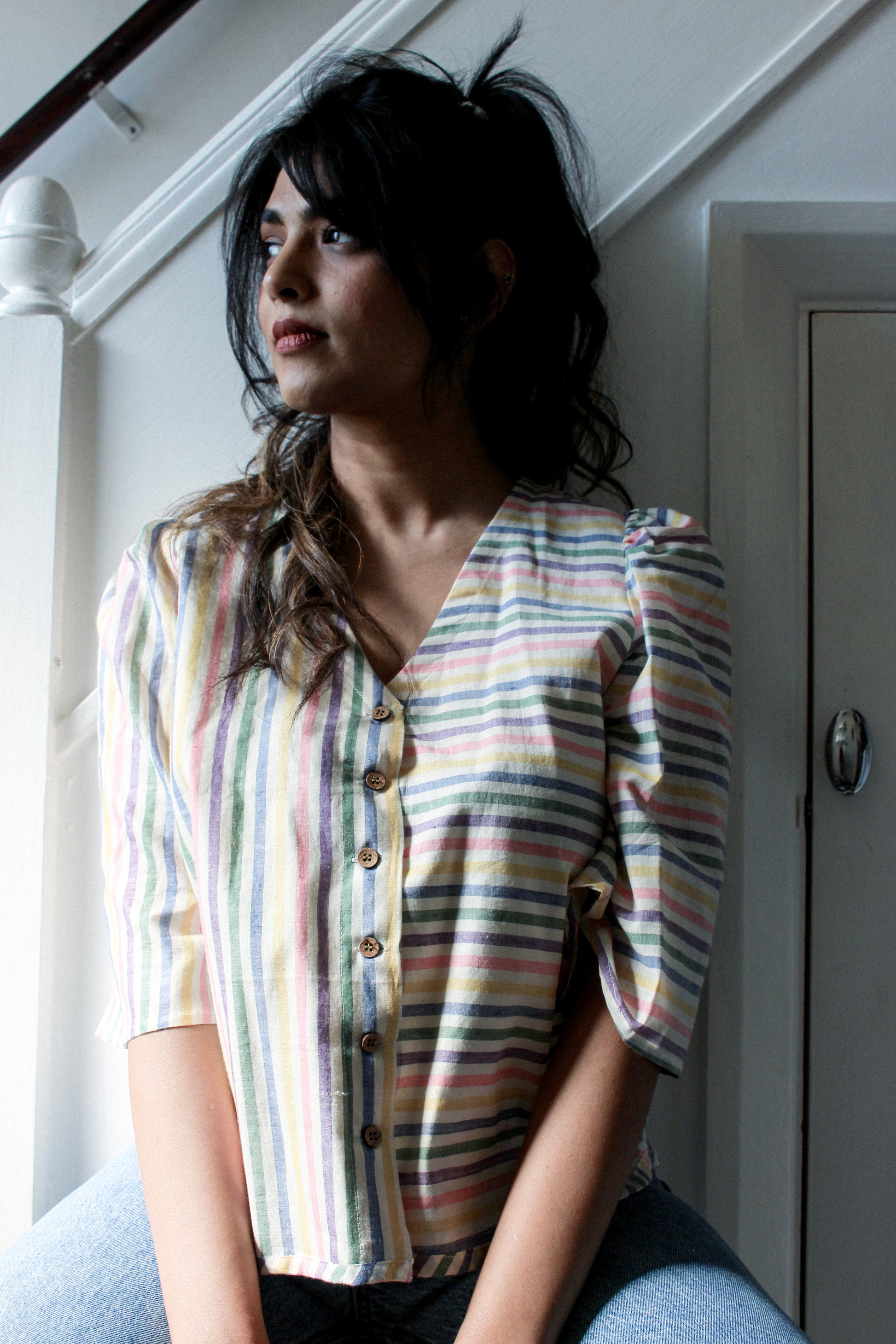 Bringing a touch of playfulness to your wardrobe with pastel stripes. Crafted from handspun and handwoven cotton, it offers a soft, breathable feel.